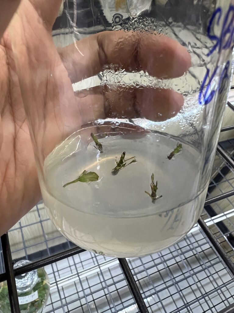 Khi chồi đã đạt kích thước chuẩn, kỹ thuật viên sẽ tiến hành cắt chồi ra khỏi mô sẹo để chuyển sang môi trường tạo rễ,.