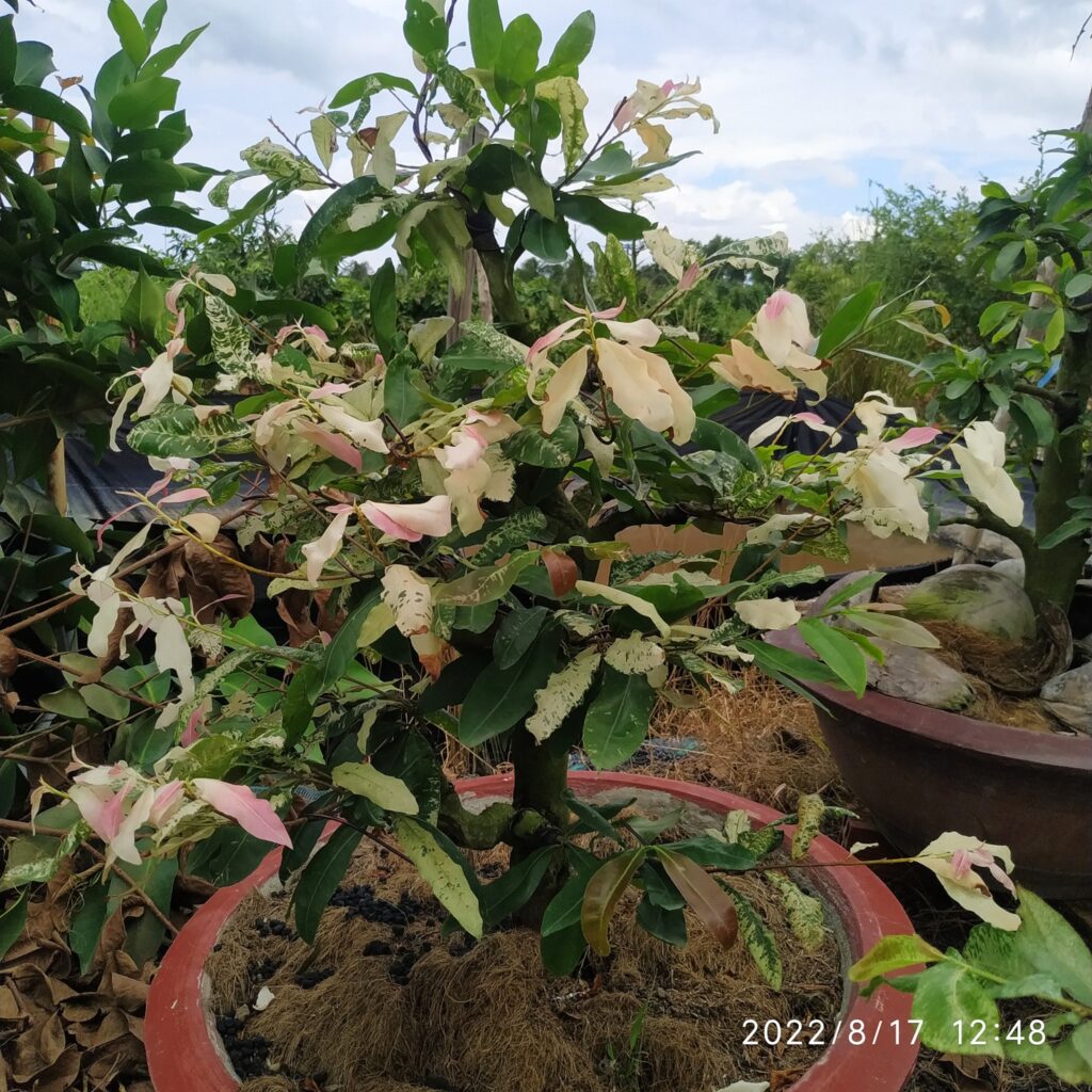 - Hình thái lá: Lá đơn, mọc so le, hình bầu dục hoặc mũi mác. Đặc biệt, các dòng Bạch Mai hiện đại thường có lá vân cẩm thạch (trắng – xanh) do đột biến sắc tố, giúp cây có giá trị thẩm mỹ ngay cả khi không có hoa.